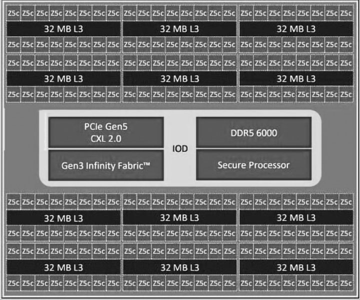 据了解,Zen 5c芯片配有32个核心,每16个一组分成两个CCX,而每个CCX共享32MB的L3缓存,每个核心则配有1MB的L2缓存。除了更多的核心数和更大的缓存容量,更低的工作电压或许也是Zen 5c架构转向更先进工艺的原因之一。采用Zen 5c架构的EPYC服务器处理器最多可配备6个CCD,提供最多192个核心。相比之下,基于Zen 5架构的CCD为单个CCX,只有8个核心,共享32MB的L3缓存。如果是Zen 5 V-Cache设计,那么会配有更大的额外L3缓存。
