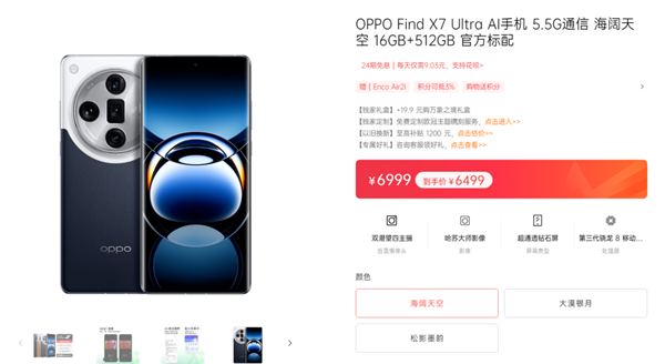 OPPO Find X7 Ultra,今年一月份发布,当时 16GB+512GB 顶配版本售价 6999,如今它在官网已经降了 500,期间官方还推出过送限定手机壳的活动,而这台手机在第三方平台甚至不到 5800。