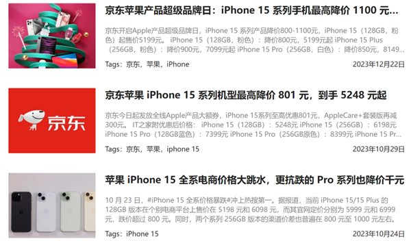 iPhone 15 系列,去年九月中旬发布,结果同年十月它就因为全系降价冲上了热搜第一,15/15 Plus 128GB 版本在电商平台降价超过 800,Pro 系列降幅更是超过千元,都说苹果保值,我看未必~