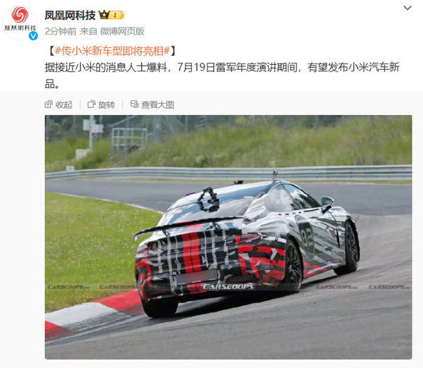 【CNMO科技消息】7月16日,CNMO注意到,有报道称,据接近小米的消息人士爆料,7月19日雷军年度演讲期间,有望发布小米汽车新品。