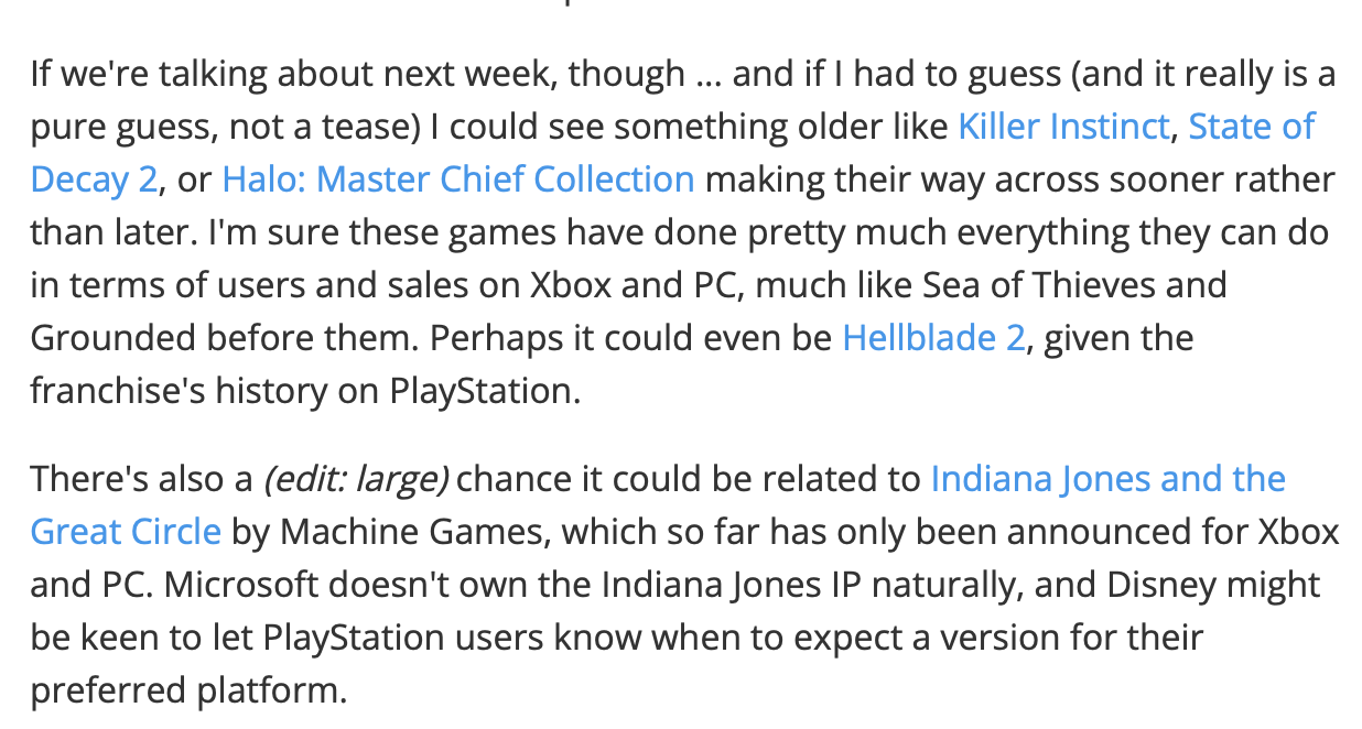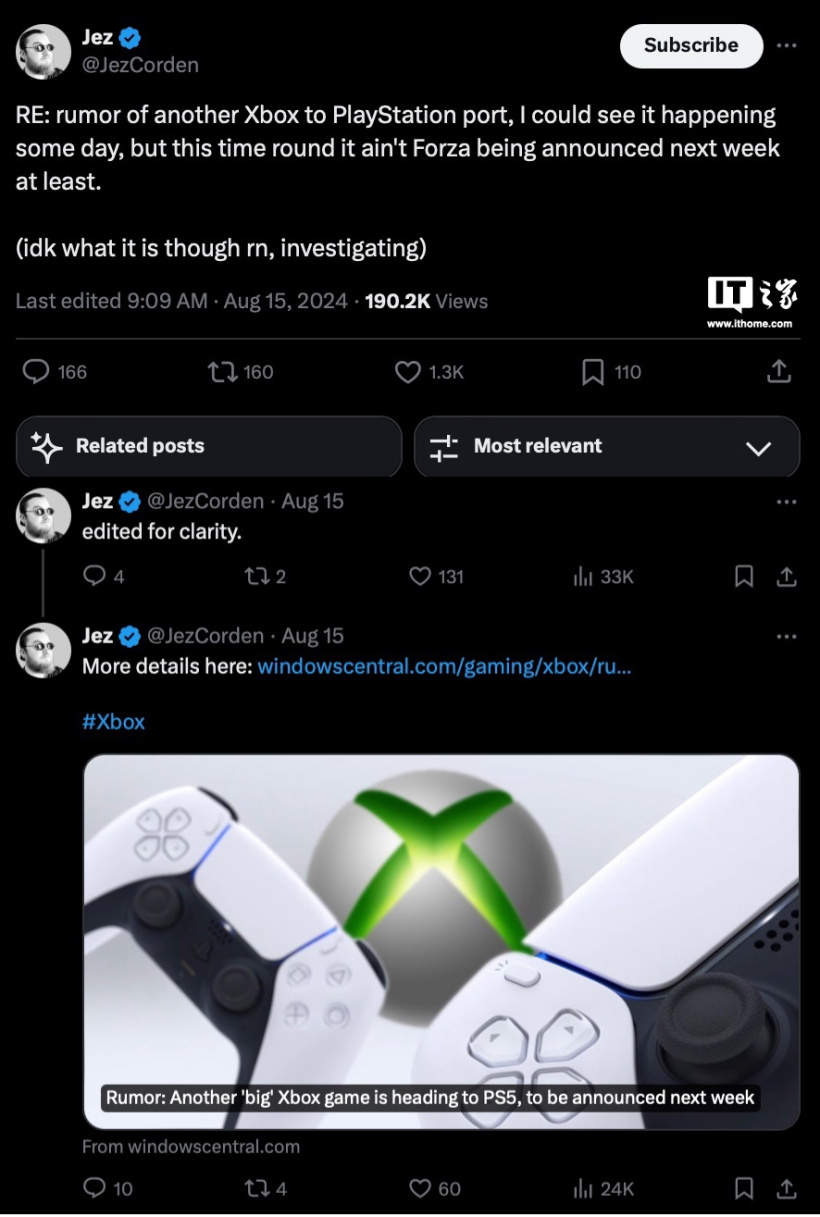 不过 Windows Central 记者?Jez Corden 在 X 平台反驳相关言论,并在贴文回复中附上新闻链接,认为这款游戏更有可能是《腐烂国度》、《光环》或《夺宝奇兵:古老之圈》。